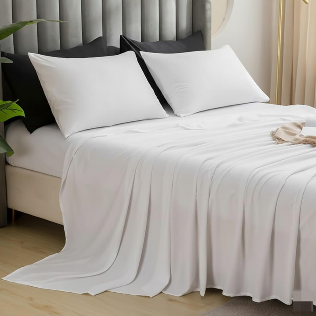 ملاءة سرير قطنية عالية الجودة توفر نوماً مريحاً بفضل نسيجها الناعم الذي يسمح بتدفق الهواء وامتصاص الرطوبة، مما يضمن الراحة طوال الليل.