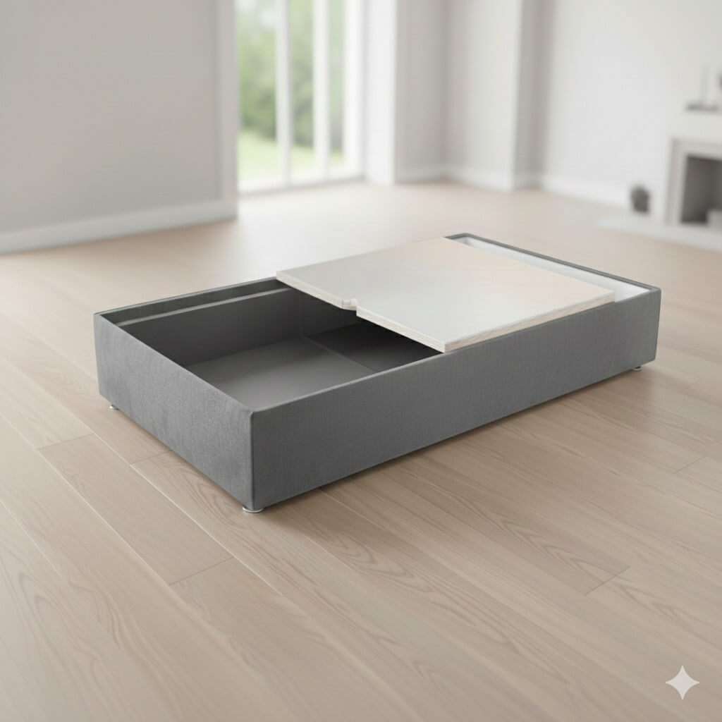 4 musky/beech support beams inside the storage base with an MDF board for reinforced storage.