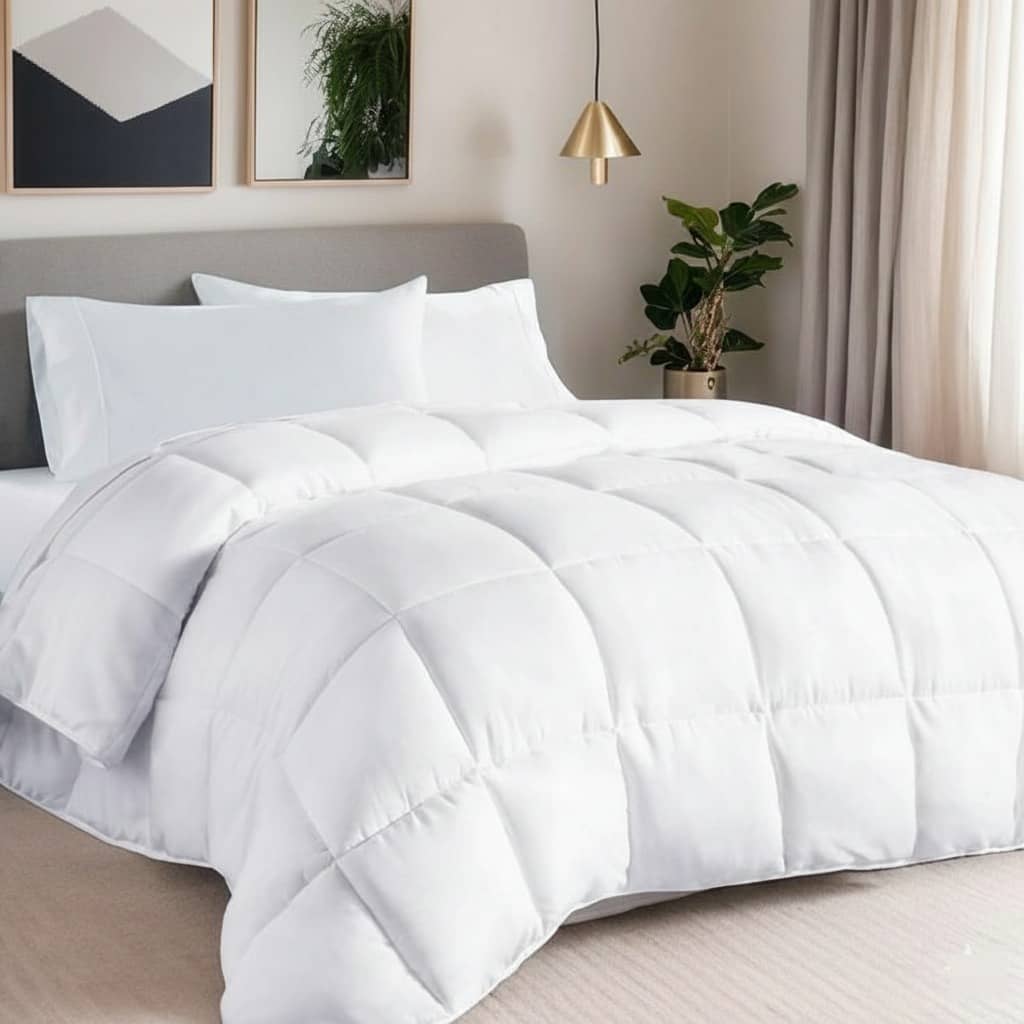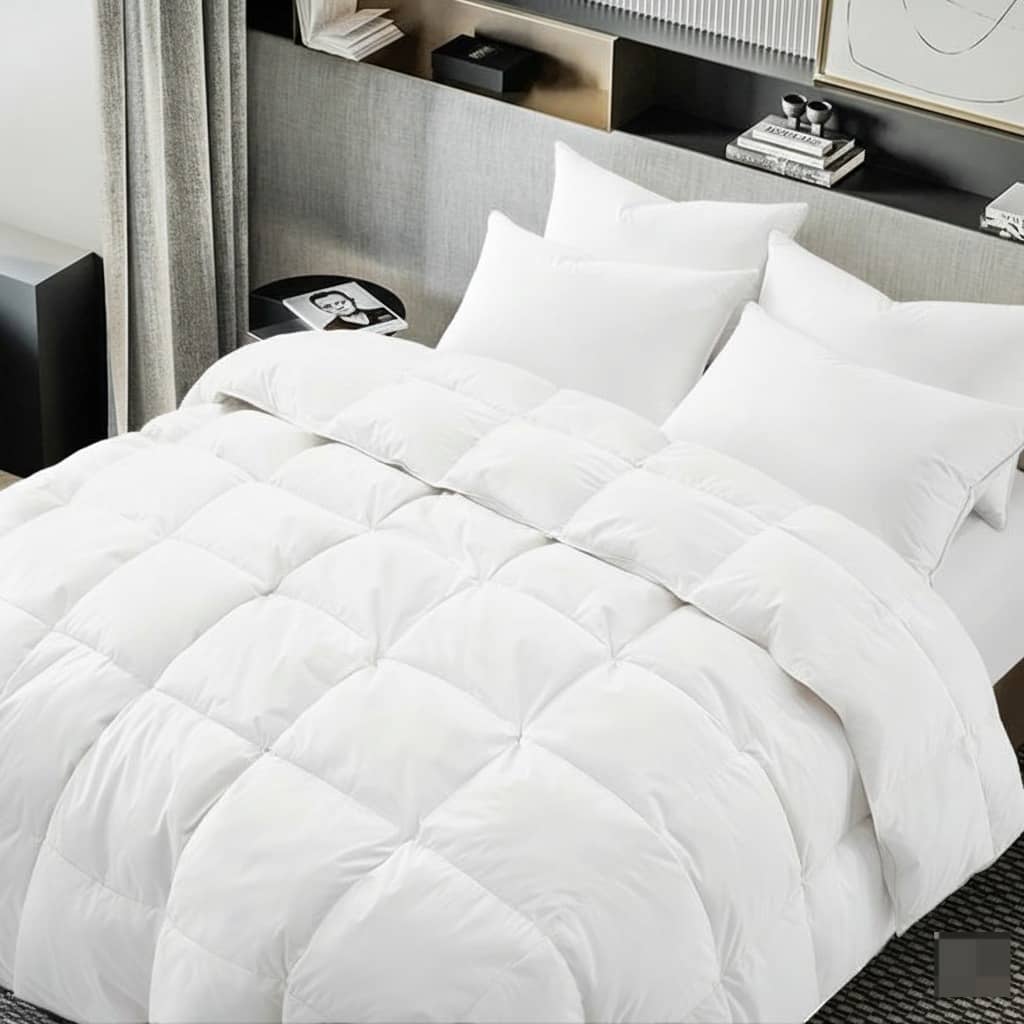 Luxurious hotel-quality duvet that provides a peaceful and restful sleep with its soft fabric that is gentle on the skin. The internal filling is made of lightweight, comfortable microfiber fibers that provide excellent warmth in winter and allow airflow in summer, adding a touch of comfort and freshness to your room.