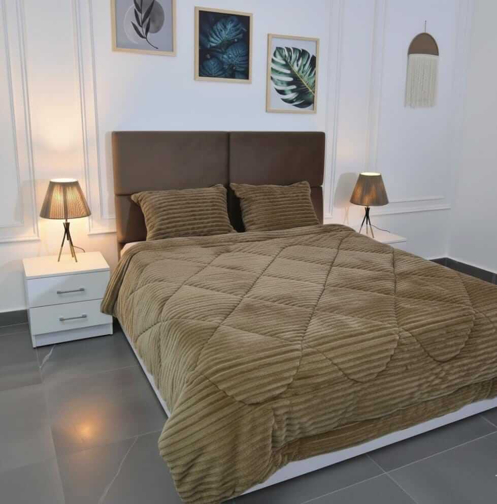 Luxury Duvet from Life Mattress features soft faux fur on one side and a plush velvet back for unmatched warmth. With an elegant design and high-quality thermal roll fiber filling, it offers ideal warmth with high density for ultimate comfort. It provides maximum comfort during winter and withstands repeated washing, maintaining its soft and warm texture. Perfect for daily use, it adds a touch of luxury to your bedroom, creating a cozy and inviting winter atmosphere.”Available in: