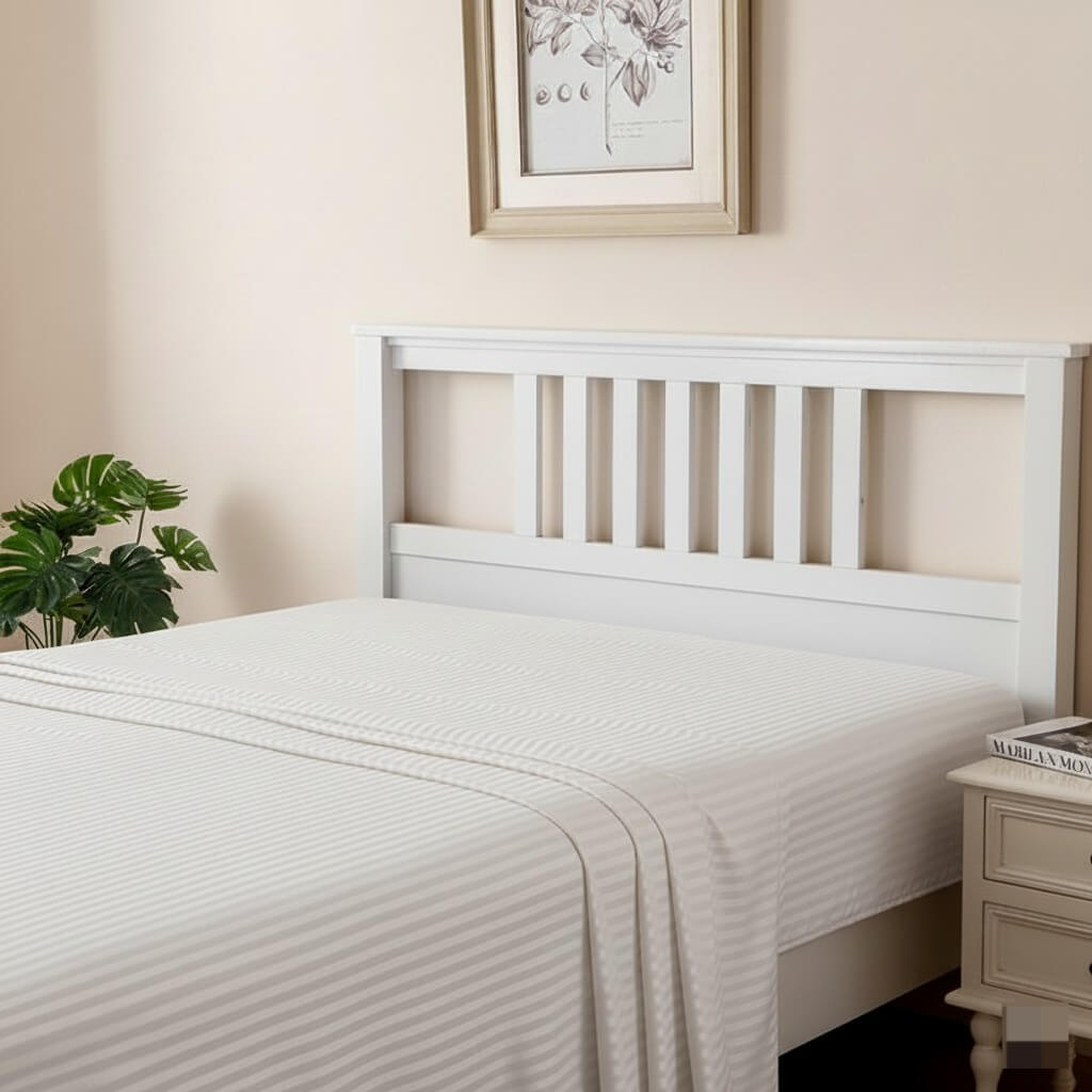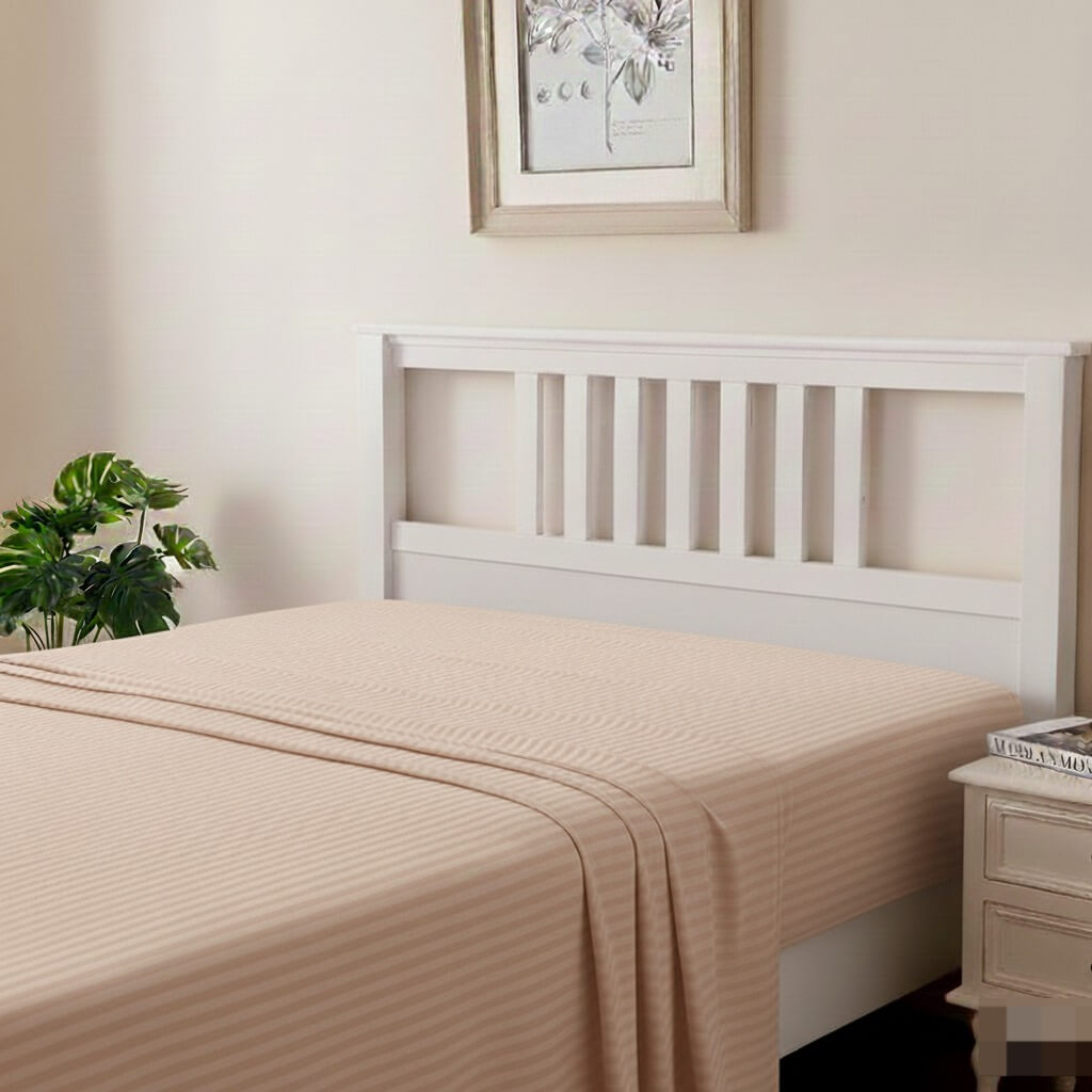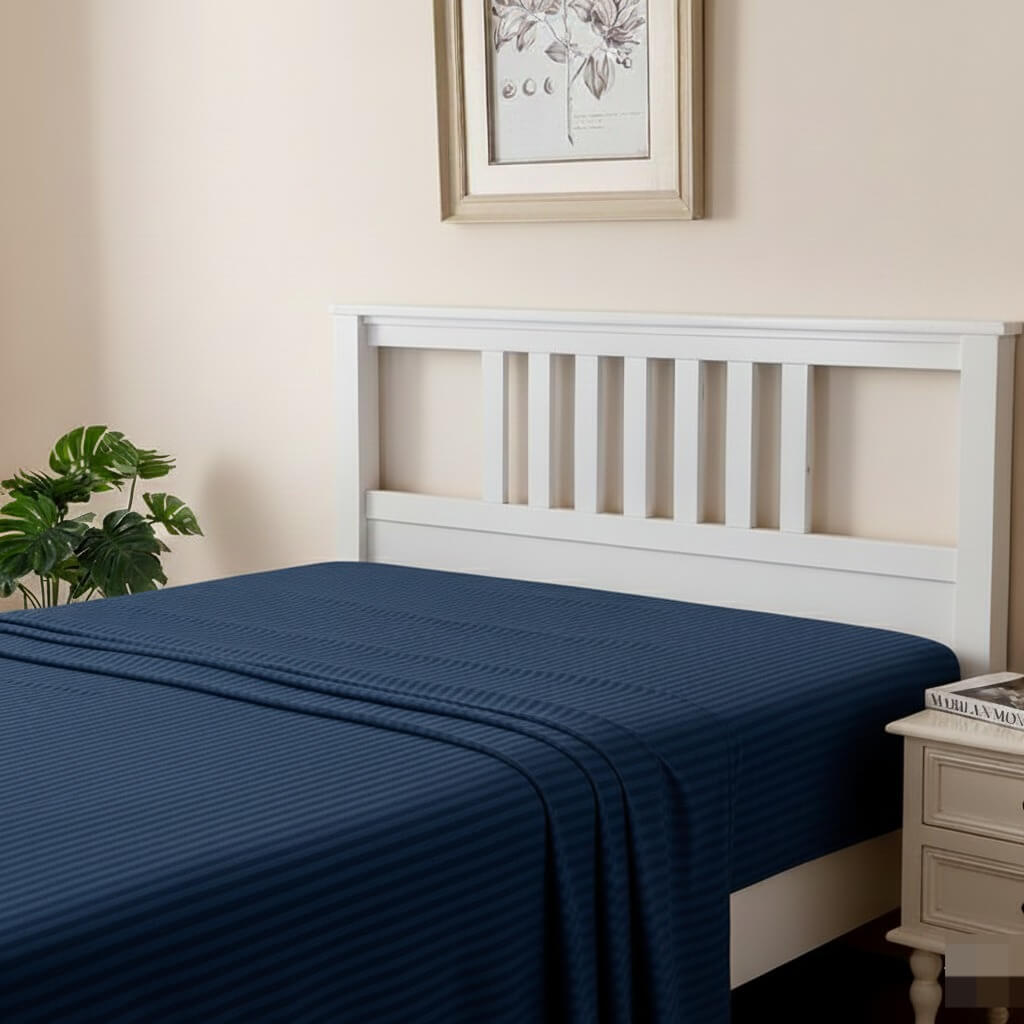 Bed sheet made from luxurious Egyptian cotton with a striped satin design, offering a peaceful and comfortable sleep. It features a soft, skin-friendly fabric that allows air circulation and absorbs moisture, ensuring comfort throughout the night.